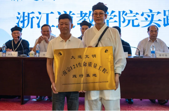 本次會議開幕式上,浙江省道教學院郭嗣昶道長為武義縣壽聖宮授牌「浙江道教學院實踐基地」。